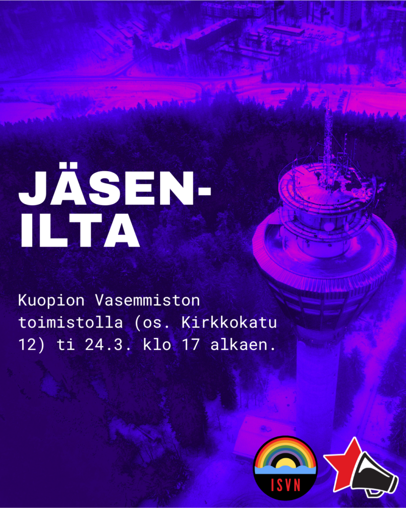 Tapahtumapaikka: Kuopion Vasemmiston toimisto (os. Kirkkokatu 12, 70100 Kuopio)
