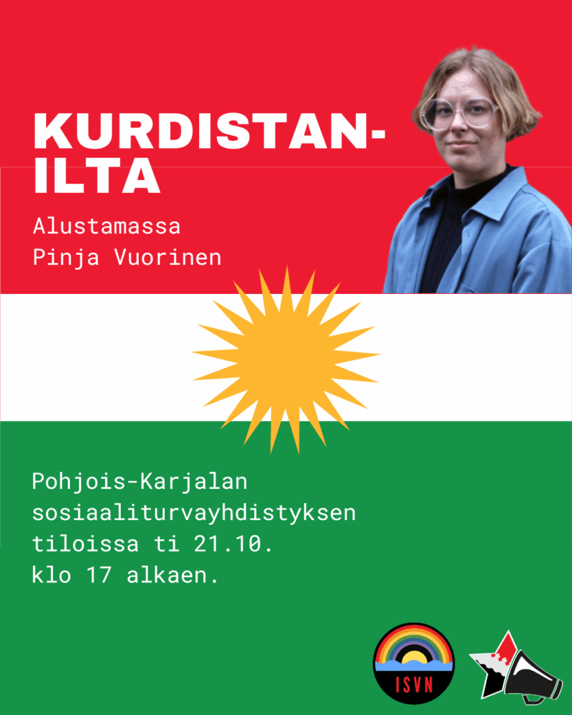 Ensi tiistaina kuullaan ja keskustellaan Kurdistanista ja kurdeista. Paikalla keskustelua alustamassa on Vasemmistonuorten puheenjohtaja Pinja Vuorinen.